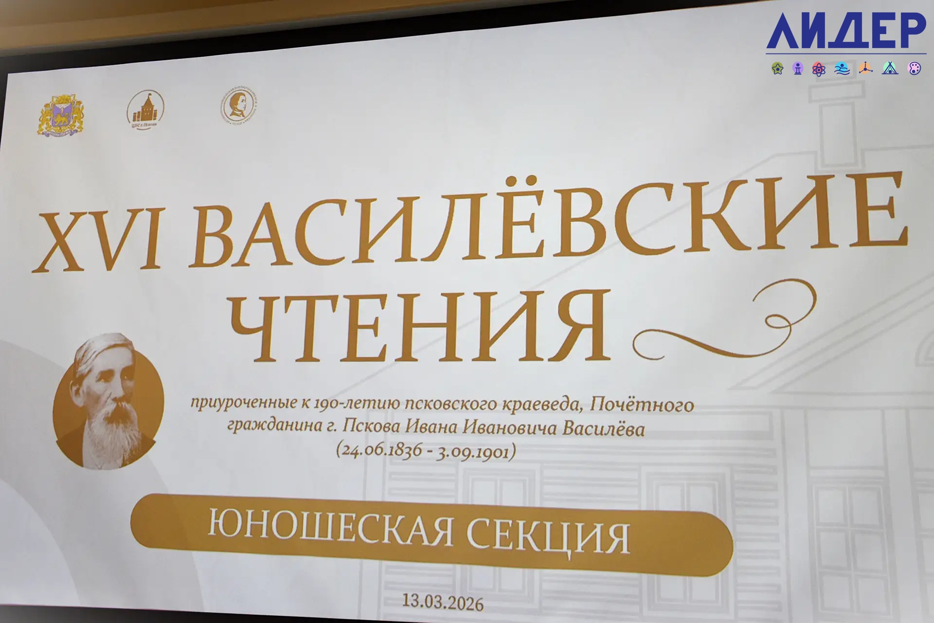 На ХYI краеведческих чтениях , посвященных 190-летию Ивана Ивановича Василёва, псковского краеведа и Почётного гражданина города Пскова, ГАОУ ДО «Лидер» выступает партнером историко-краеведческой библиотеки.